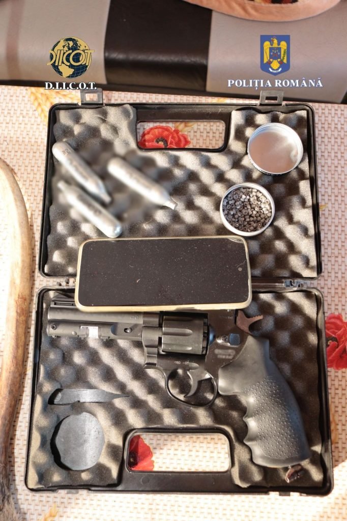 Tot în urma perchezițiilor, au fost ridicate 3 dispozitive night-vision, un dispozitiv cu termoviziune, o grenadă de manevră, 190 de kilograme de carne de vânat, 25 de trofee, 3 blănuri de animale sălbatice, 20 de telefoane mobile, diferite înscrisuri, sume de bani, bijuterii și diferite cantități de droguri de risc.