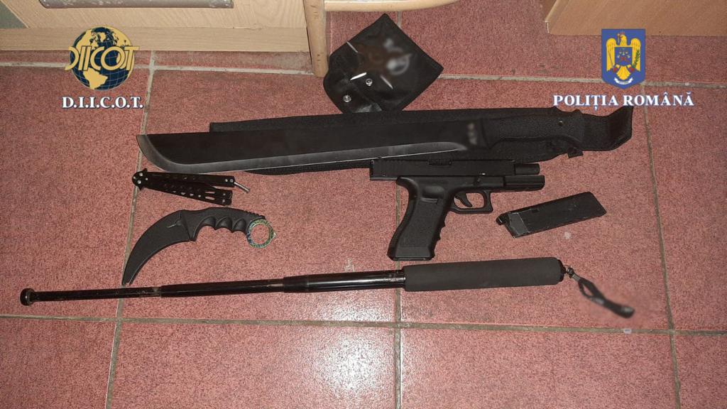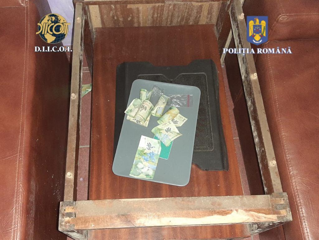 În timpul perchezițiilor au fost identificate și ridicate cantități de droguri de risc și mare risc, un grinder, un cântar de mare precizie, un pistol cu aer comprimat și cartușe cu bile de cauciuc, mai multe arme albe, înscrisuri olografe , sume de bani în lei și euro, precum și mai multe telefoane mobile.
