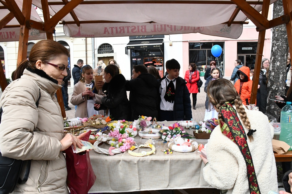 Evenimentul a început vineri, 11 aprilie, cu deschiderea Târgului ”Produs în Bistrița-Năsăud”, care a transformat pietonalul Liviu Rebreanu într-un spațiu plin de culoare și simboluri pascale. La standurile amenajate sunt expuse spre vânzare ouă pictate, copaci decorați în stil săsesc, produse artizanale și delicii locale.