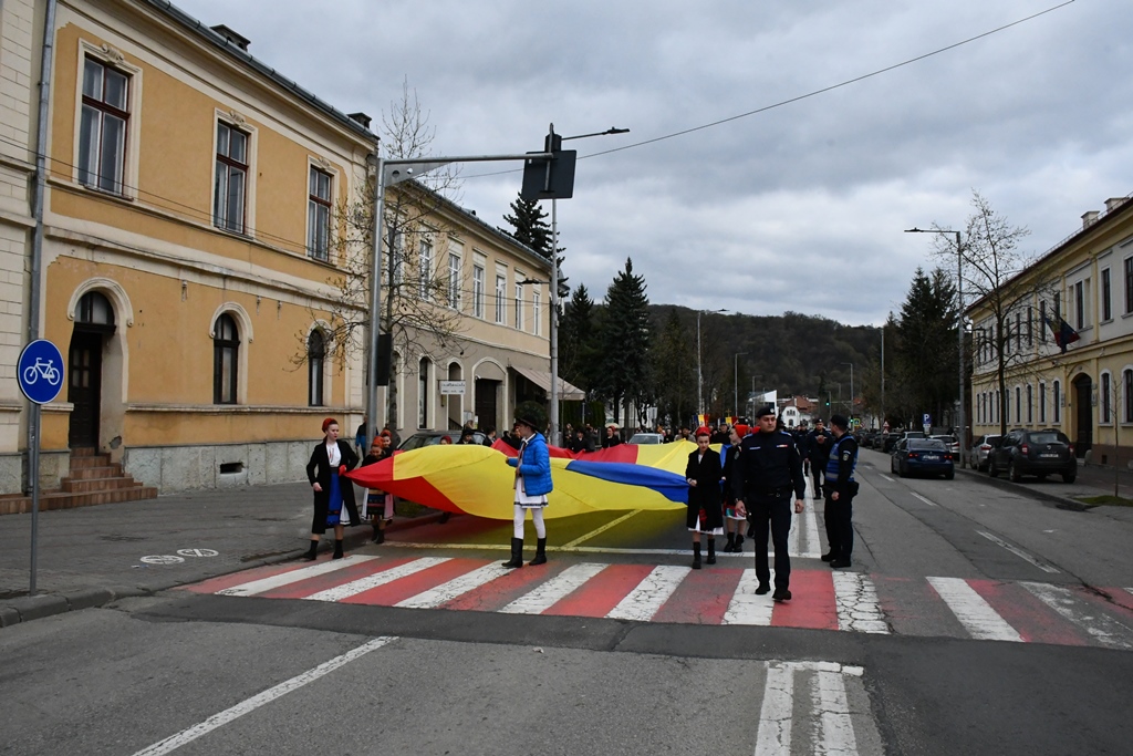 Pe tot parcursul traseului, tineri îmbrăcați în straie populare au purtat pe brațe un tricolor imens. Alături de ierarh, la procesiune au luat parte numeroși preoți, călugări, reprezentanți ai autorităților centrale, județene și locale, copii și tineri, precum și o mulțime de credincioși, care au purtat în mâini ramurile verzi.