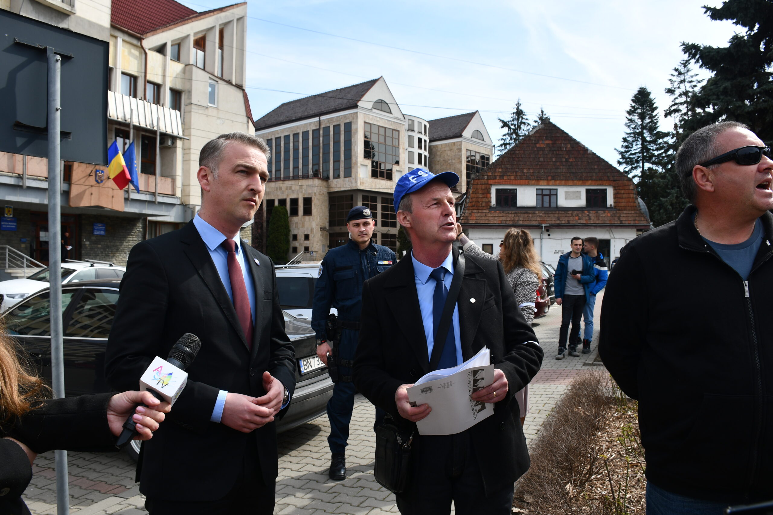O delegaţie a protestatarilor a fost primită de prefectul judeţului Bistrița-Năsăud, Teofil Cioarbă.