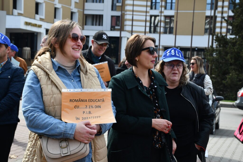 Manifestanţii au afişat mesaje precum ”România educată cu … 2,1% din P.I.B în 2023?”, ”Vrem salarii decente și pentru personalul nedidactic”, ”Noi nu ne hrănim cu minciuni și promisiuni”, ”Salvați Educația, susțineți Educația”, ”Respectați Legea privind acordarea sporului pentru condiții de muncă” sau ”Educația – Cenușăreasa sistemului”.