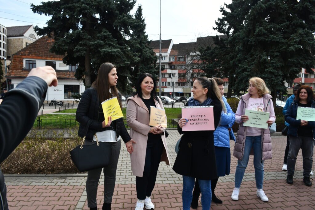 Aproximativ o sută de sindicalişti din Educație au pichetat, vineri, sediul Instituției Prefectului Bistrița-Năsăud, nemulțumiți de nivelul scăzut de salarizare și de finanţarea acordată sistemului de educaţie.