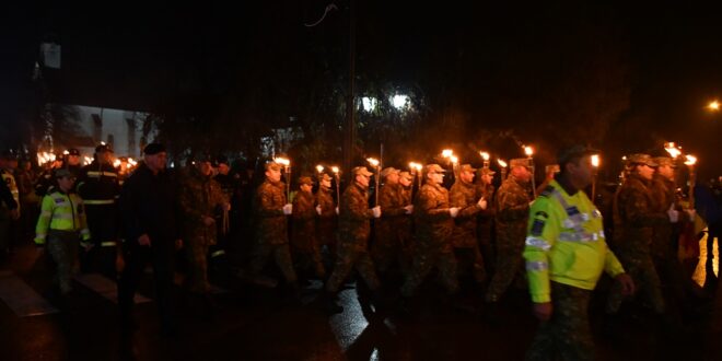 La Bistrița, manifestările organizate cu prilejul Zilei Naționale a României s-au încheiat, vineri seara, printr-o ceremonie de retragere cu torțe desfășurată pe străzile orașului, acțiune la care au participat militari ai Brigăzii 81 Mecanizată ”General Grigore Bălan”, oficialități locale, dar și locuitori ai orașului.