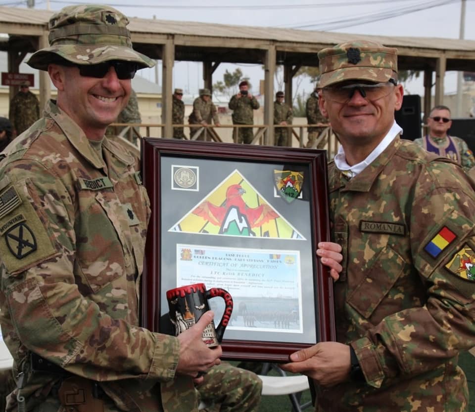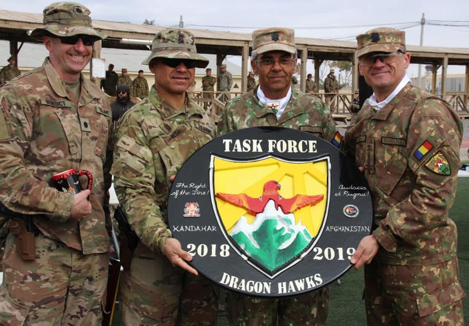 Reamintim că peste 400 de militari ai Batalionului 812 Protecţia Forţei “Şoimii Carpaţilor” au executat, în perioada august 2018 – februarie 2019, misiuni specifice de asigurare a protecţiei forţei din Baza Militară Kandahar, precum şi misiuni de instruire, consiliere şi asistenţă a Forţelor Naţionale Afgane. Unitatea, înfiinţată în urmă cu 23 de ani, a mai fost prezentă în teatrele de operaţii din Angola (în anul 1997), Irak (în perioada 2004-2005) şi Afganistan (între anii 2002-2003, 2006-2007 şi 2010 – 2011).