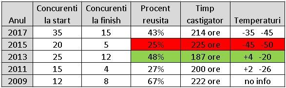 De asemenea, potrivit Asociației Tășuleasa Social, este greu pentru fiecare concurent să ajungă la final, mai ales în anii cu temperaturi scăzute. Vestea bună este că Tibi Ușeriu este deja obișnuit cu asemenea temperaturi de la ultramaratonul Arctic 6633, pe care l-a cucerit de trei ori. Totuși, atunci când se ajunge la -50 grade, nu mai pornesc snow-mobilele organizatorilor, așa că situația devine mai delicată în caz de probleme.