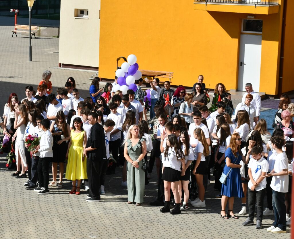 Evenimentul s-a desfășurat în curtea școlii, unde s-au adunat elevi, dascăli, părinți și bunici, pentru a marca acest moment important din viața comunității școlare.