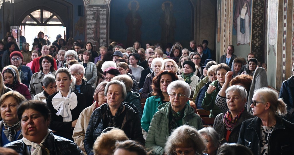 ”Ați auzit de multe ori spunându-se ‘Bucură-te, bucură-te, bucură-te!’ Dacă am face un sondaj să vedem câți dintre noi căutăm bucuria sau câți suntem bucuroși, de căutat cred că am ridica mâna toți, dar de bucuroși – mai mulți sau mai puțini. S-ar putea să ne găsim într-o stare sau alta, pentru că bucuria este ceva de dorit, dar este așa de trecătoare. O simți acum, parcă pui mâna pe ea, parcă te umple și, în foarte scurt timp, parcă îți scapă printre degete. Și iarăși trebuie să te străduiești să o dobândești. Și iarăși o dobândești puțin și iarăși fuge, și tot așa. Și, dacă este să fim sinceri, viața cam așa se desfășoară. Mare lucru ar fi să fim bucuroși tot mai mult sau, zic eu, tot timpul. Greu, greu, greu cuvânt, dar cu toții ne-am dori acest lucru. (…) Nouă ni se pare că, dacă facem ce ne place, atunci putem deveni bucuroși. Dar este așa doar până într-un loc. Maica Domnului ne arată că nu aceasta este calea unei bucurii durabile, ci bucuria durabilă este să cauți voia lui Dumnezeu și să Îi spui cu tot dinadinsul: Doamne, nu vreau altceva decât Tu să fii în viața mea, să îmi arăți pașii și calea și să mă iei de mână. (…) În momentul în care îi spui ”Da” lui Dumnezeu, chiar dacă îți e frică, chiar dacă nu înțelegi ce se întâmplă, urmează planul lui Dumnezeu și ascută cuvântul Lui. Această ascultare de Dumnezeu e însăși calea bucuriei, primul ingredient pentru ca bucuria cuiva să fie și să dureze. (…) Al doilea ingredient foarte important este (…) disponibilitatea sau slujirea totală. Asta înseamnă să nu te culci prea mult cu ale lumii, ci să ai ochii ațintiți înspre Cel pe care Îl slujești. Când te amesteci cu cele ale lumii, cu plăcerile, bucuriile și siguranțele lumii, atunci nu ești suficient de disponibil pentru slujirea măreață pe care Dumnezeu ți-a pregătit-o. (…) Așadar, ca și concluzie, dacă vrem să fim bucuroși și nu doar câteodată, ci mai tot timpul, atunci e nevoie să privim înspre acolo de unde vine bucuria. Nimic nu ne face să fim mai bucuroși decât ascultarea Domnului, disponibilitatea spre El” , a spus Preasfințitul Părinte Benedict Bistrițeanul.