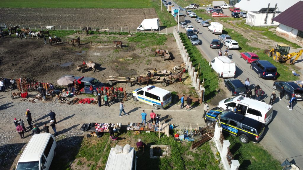 ”La data de 1 mai, polițiștii Biroului pentru Protecția Animalelor au organizat o acțiune de verificare a unui târg de cai. Activitățile de control au fost desfășurate cu sprijinul polițiștilor din cadrul Serviciului pentru Acțiuni Speciale, Serviciului Rutier, Serviciului de Investigare a Criminalității Economice, Serviciului de Investigații Criminale, Serviciului de Ordine Publică, al specialiștilor criminaliști și au beneficiat de suportul Direcției Sanitar-Veterinară și pentru Siguranța Alimentelor Bistrița-Năsăud. (…) Întrucât s-a constatat faptul că târgul se desfășoară fără îndeplinirea obligațiilor prevăzute de lege si fără autorizație de funcționare, polițiștii au luat măsura opririi activităților și evacuării tuturor persoanelor și animalelor. Ca măsuri contravenționale, polițiștii au aplicat 41 de sancțiuni, în valoare totală de aproape 49.000 de lei. Acestea au vizat încălcări ale următoarelor prevederi legale: Legea 205/2004 privind protecția animalelor, Hotărârea de Guvern 984/2005 privind stabilirea și sancționarea contravențiilor la normele sanitare veterinare și pentru siguranța alimentelor, Ordonanța de Urgență 195/2002 privind circulația pe drumurile publice, Ordonanța de Urgență 28/1999 privind obligația operatorilor economici de a utiliza aparate de marcat electronice fiscale și Legea 232/2003 privind privind corelarea unor dispoziții din legislația financiar-fiscală”, se arată în buletinul IPJ Bistrița-Năsăud.