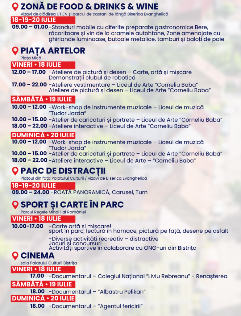 Municipalitatea invită locuitorii și vizitatorii să se alăture acestei sărbători care transformă Bistrița într-un loc plin de culoare, muzică și bucurie.
