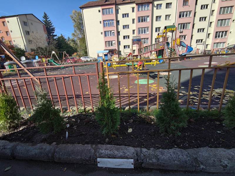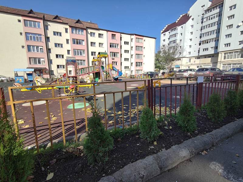 Tot în această zonă, în jurul spațiului de joacă pentru copii, au fost plantați 120 de puieți de tuia, pentru a îmbunătăți aspectul peisagistic și a asigura mai multă umbră și protecție. Și acolo, containerele semiîngropate vor fi înlocuite cu containere supraterane încasetate, mai estetice și mai ușor de întreținut.