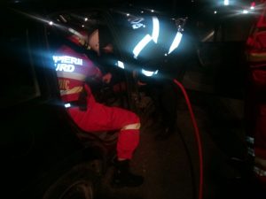 În fiecare din cele două autoturisme se aflau doar șoferii. Însă impactul dintre cele două autoturisme a fost extrem de puternic, iar unul dintre șoferi, cel care a și provocat accidentul, a rămas încarcerat între fiarele contorsionate ale mașinii.