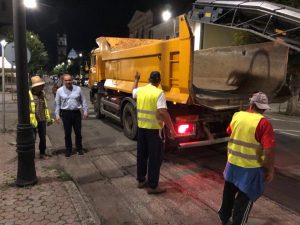 Viceprimarul Cristian Niculae a efectuat o vizită în teren pentru a verifica modul în care decurg lucrările pe timpul nopții.