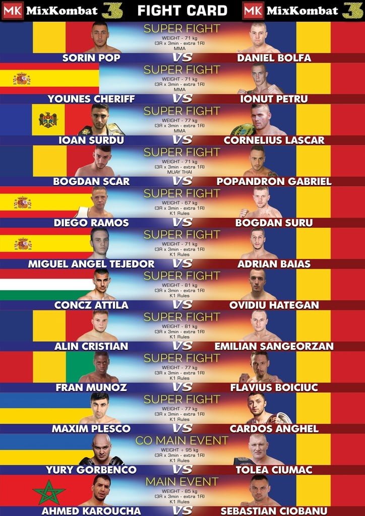 La gala MixKombat vor lupta 5 sportivi ai clubului Profesional Fight Gym. Spectacolul va avea loc sâmbătă, 14 octombrie iar meciurile vor fi transmise la nivel național, pe Digisport 2. Gala este organizată de Profesional Fight Gym, cu sprijinul Consiliului Județean și cuprinde 12 meciuri de talie internațională!