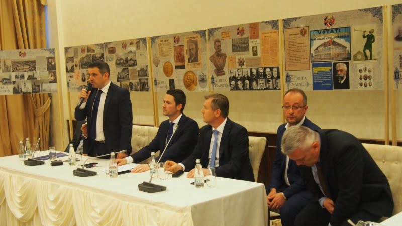 Hangan: – Asta e una in marile dorinețe pentru că i-am auzit pe pe mulți dintre colegii mei și pe mulți lideri politici de la alte partide… la modul declarativ că deschid partidul, dar tot timpul le ferecau cu 3 lacăte din interior. Îmi doresc ca echipa care va ieși astăzi ca vicepreședinți și membrii să facă cu adevărat ceea ce au spus, să gândească la unison cu mine, fiecare să-și facă treaba la locul lui, să adunăm oameni de specialitate, proiecte pentru urbea noastră. Le spun de pe-acuma că cei care NU vor face… nu îmi pasă de epoleții de pe umăr… de prim-vicepreședinți… o să primească mustrările și tot ceea ce derivă din asta. Sper ca în scurt timp prin proiectele pe care le voi face, sper ca în scurt timp să devenim o echipă atractivă!