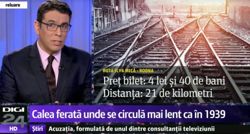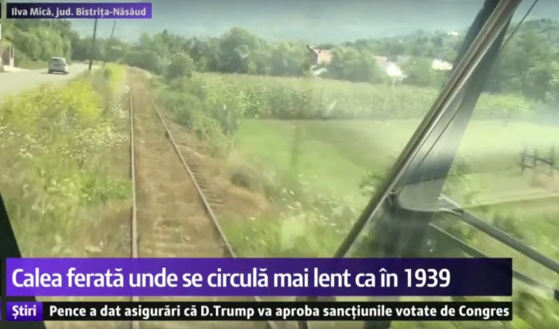 DIGI 24: Mult fast pentru puțin! Avem un tronson 21 de kilometri de cale -ferată, ne-electrificat, năpădit de buruieni! Viteza de rulare e mai mică decât acum 78 de ani. Se merge în medie, cu 28 de km/h!