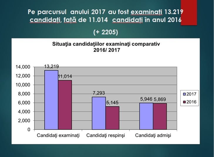 Anul trecut au fost examinați peste 13.000 de candidați, cu aproximativ 2.000 mai mulți decât în 2016.