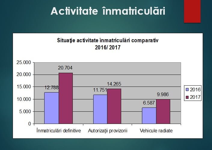 În ceea ce privește activitatea de înmatriculare a vehiculelor, volumul de muncă aproape că s-a dublat în 2017 comparativ cu 2016.