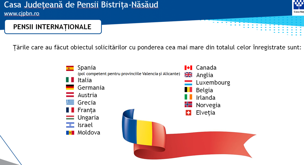 ”Anul trecut am avut 951 de solicitări. Activitatea Compartimentului de Pensii Internaţionale crește de la un an la altul pentru că tot mai multe persoane vin cu vechime din afara țării. Sunt pensionari care locuiesc în alte state, depun cerere de pensie pe raza statului unde locuiesc, se face transmiterea de date, noi le confirmăm vechimea de aici. Cei care locuiesc la noi în țară depun cererea la CJP și cerem noi vechimea din alte state. Cele mai multe cereri au fost în relația cu Spania, unde avem cei mai mulți bistrițeni care au lucrat și s-au întors în țară și încearcă să își valorifice vechime de la statul respectiv”, a mai spun directorul Casei Județene de Pensii Bistrița-Năsăud.