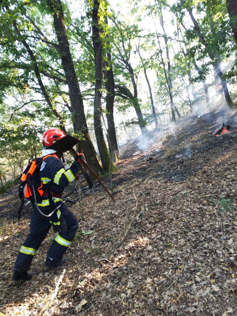 Eforturile forțelor de intervenție se concentrează pe limitarea propagării incendiului și protejarea pădurii de foioase din apropiere.