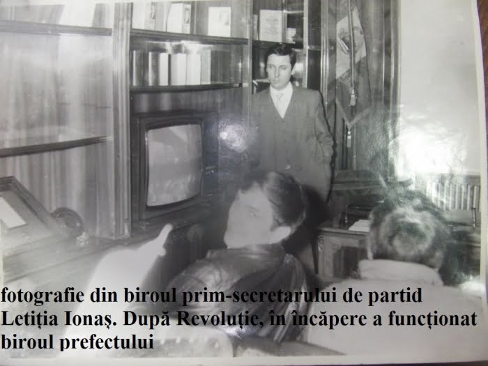 Între timp şi în prezenţa întregii conduceri a Consiliului Judeţean s-a blocat toată asistenta, când la un moment dat a dispărut imaginea de pe ecranul televizorului. Am auzit aunci strigăte puternice din direcţia Poștei : „A fugit dictatorul!” După câteva minute a apărut pe ecranul televizorului imaginea cu drapelul găurit şi primii revoluţionari: Mircea Dinescu şi Ion Caramitru. Au stigat : „Jos comunismul!” „Jos Tirania!” „Am învins !” „Dumnezeu ne-a ajutat !”