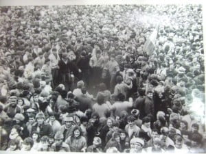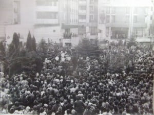 Când am coborât printre soldaţii înarmaţi şi cu căşti metalice pe cap , m-am speriat puţin. Manifestanţii forţau uşa de la intrare şi strigau tare ca eu să vorbesc incontinuare. Atunci ,cei doi ofiţeri m-au luat iar şi ne-am întors din nou în biroul primului-secretar. Disperată d-na prim-secretar Letiţia Ionas, m-a întrebat dacă nu sunt…nebun: „Cum îmi permit să vorbesc împotriva comunismului şi a tov. Ceauşescu ? Să ştii de la mine azi; eşti un om pierdut !”