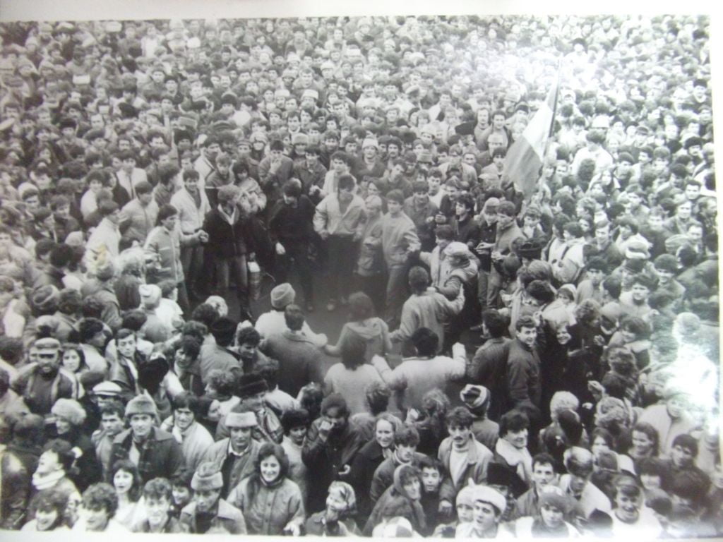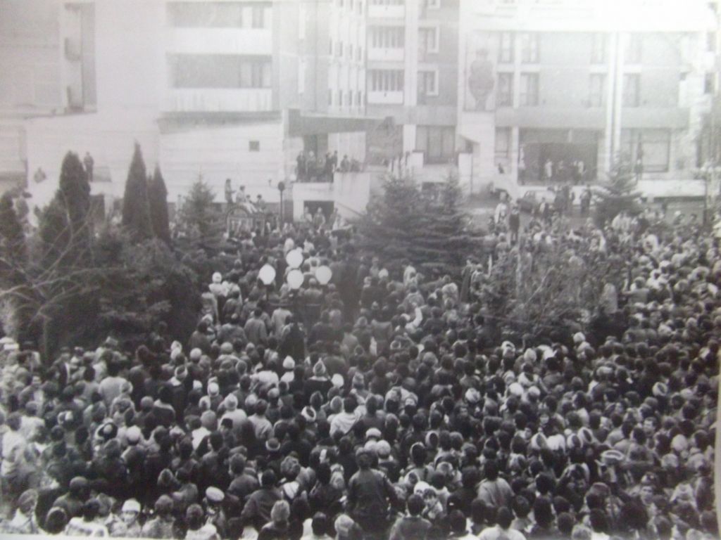 În jurul orei 9.00 mulțimea s-a adunat în fața Consiliului Judeţean (Piața Petru Rareș, în jur de 10 000 oameni). Cinci sau șase dintre manifestanți am avut curajul să intrăm în sediu cu permisiunea comandantului poliției municipale de atunci col. Acatrinei Gheorghe.