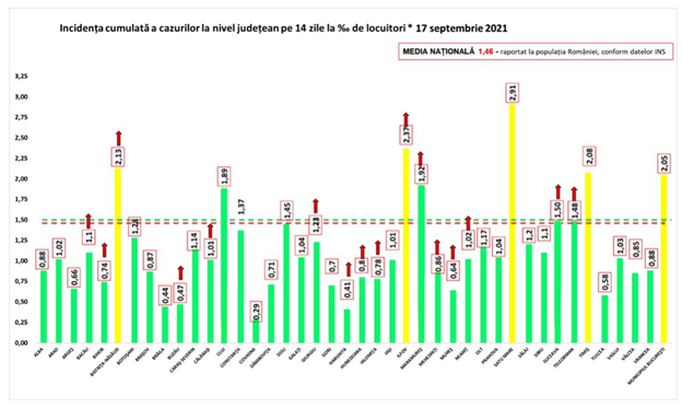 Judeţul Bistrița-Năsăud a intrat, vineri, în scenariul galben, având o incidenţă a infectărilor, cumulate la 14 zile, de 2,13 cazuri la mia de locuitori.