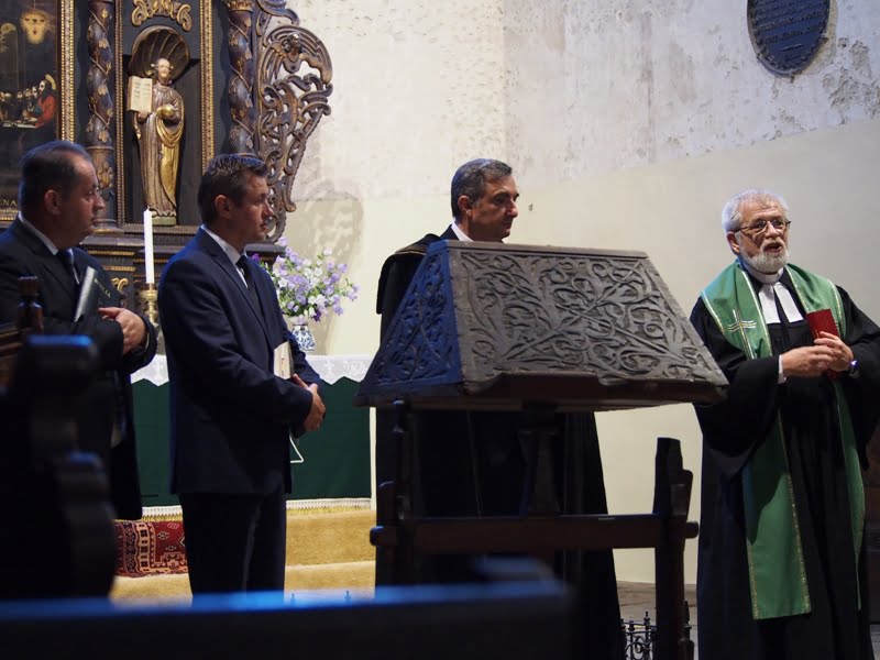 Primarul NU a amintit nimic de conflictul din urmă cu câțiva ani dintre primărie și Johann Krauss, conflict în urma căruia Biserica Evanghelică a ratat o finanțare de 5 MILIOANE de euro din bani europeni. Reamintim faptul că proiectul de reabilitare a Bisericii Evanghelice a fost întocmit greșit în 2009, iar Primăria Bistrița și Parohia Evanghelică s-au acuzat reciproc pe acest subiect.