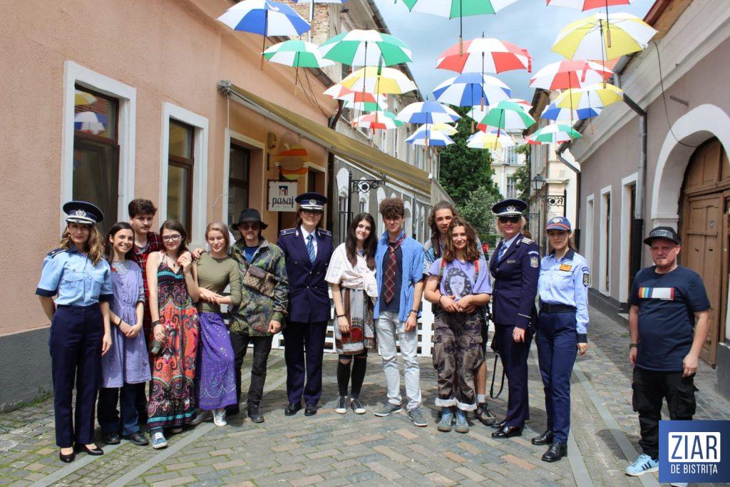 Apoi o trupă de elevi ingenioși și creativi ai Liceului de Arte Corneliu Baba Bistrița au realizat în diferite locații din oraș acte de ”performing art” prin care au ilustrat situații de viață și cupluri din diferite categorii sociale care ajung la stări conflictuale, abordând inclusiv tema hărțuirii stradale. Polițiștii i-au însoțit și au discutat cu trecătorii situațiile respective, testând în acest fel și capacitatea de reacție a publicului în astfel de situații.