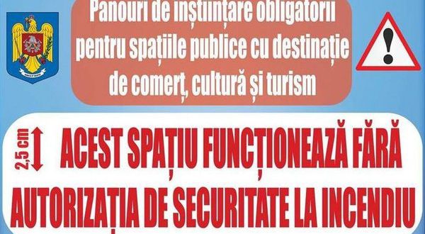 Conform acestei legi, beneficiarii investițiilor care vizează construcții publice fără autorizație de securitate la incendiu au obligația să realizeze și să amplaseze panouri de înștiințare în dreptul intrărilor în spațiile respective, cu următorul conținut, tipărit cu litere de tipar cu dimensiuni de minimum 2,5 cm, de culoare roșie, pe fundal alb: «Acest spațiu funcționează fără autorizație de securitate la incendiu».