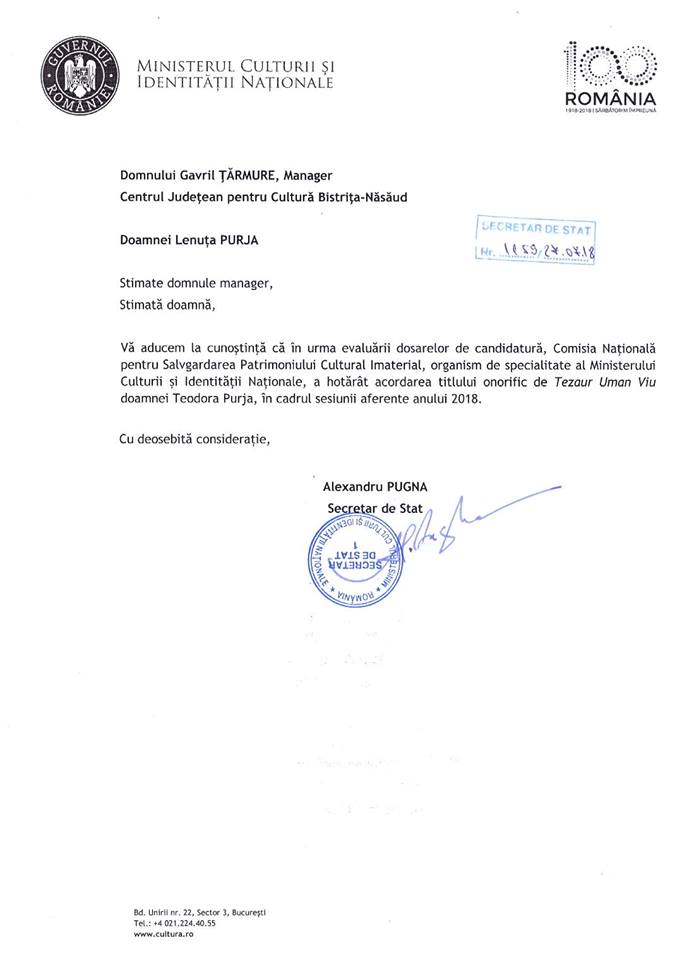 Mama mea a primit titlul de „tezaur uman viu”, nu eu! Va rog refaceti articolul cu aceasta informatie!