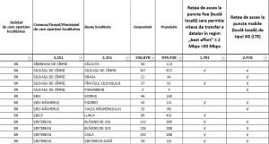 ”Cele 3.251 de localități din lista „zonelor albe NGN” conțin 350.870 de gospodării și au o populație totală de 939.438 de locuitori (potrivit datelor Institutului Național de Statistică de la cel mai recent recensământ al populației, din 2011). Din cele 3.251 de localități, 1.781 figurează ca fiind deservite de o rețea de comunicații electronice la puncte fixe care poate asigura conexiuni cu viteze de transfer a datelor (download) în regim „best effort” de minim 2 Mbps, dar nu mai mult de 30 Mbps, iar un număr de 2.418 figurează ca fiind deservite de cel puțin o rețea de acces la puncte mobile de tipul 4G (LTE). Unele dintre aceste localități ar putea face obiectul unei scheme de ajutor de stat din partea MCSI, astfel încât să devină deservite de rețele cu viteze de 30 Mbps sau mai mari” informează ANCOM.