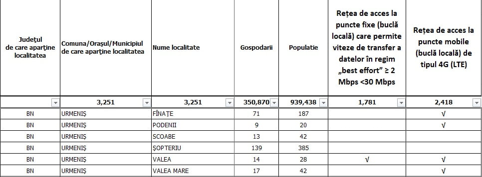 Întreaga listă a „Localităților nedeservite 30Mbps” poate fi consultată aici.