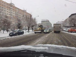 Câteva ore a nins la Bistrița și traficul s-a sufocat! Trotuarele sunt înzăpezite, pe arterele principale se circulă cu dificultate iar între blocuri NU s-a intervenit deloc. Ca în fiecare an, Primăria Bistrița este surprinsă de ninsoare. În pragul campaniei electorale, echipa de comunicare a transmis poze de bine, cu viceprimarul Cristian Niculae în acțiune.