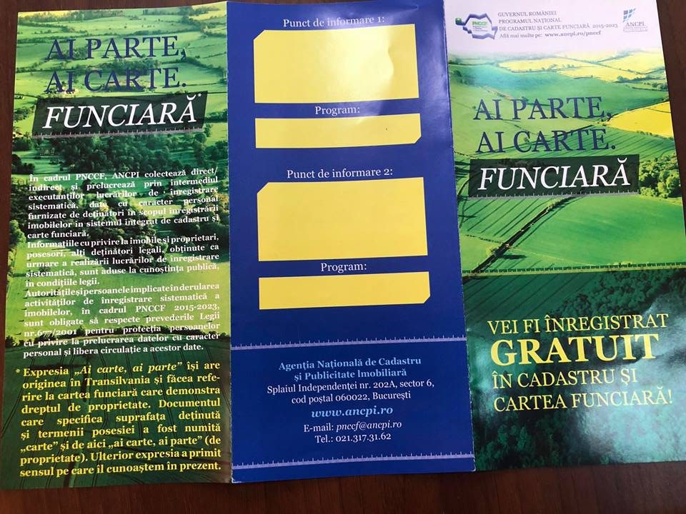 ”Vă înştiinţez că au început măsurătorile în comuna noastră, pentru realizarea lucrărilor de cadastru general, prin programul naţional de cadastru şi carte funciară, prograrn fiinanţat de Guvernul Româniel. Începând de marţi 03.07.2018, echipe de specialişti ai societăţii care a câştigat licitaţia, vor veni după un program stabilit, în gospodăria dumneavoastră pentru a face măsurătorile necesare în vederea intăbulări imobilelor din intravilanul localităţii în cartea funciară” a anunțat primarul comunei Lechința, Romeo Florian.