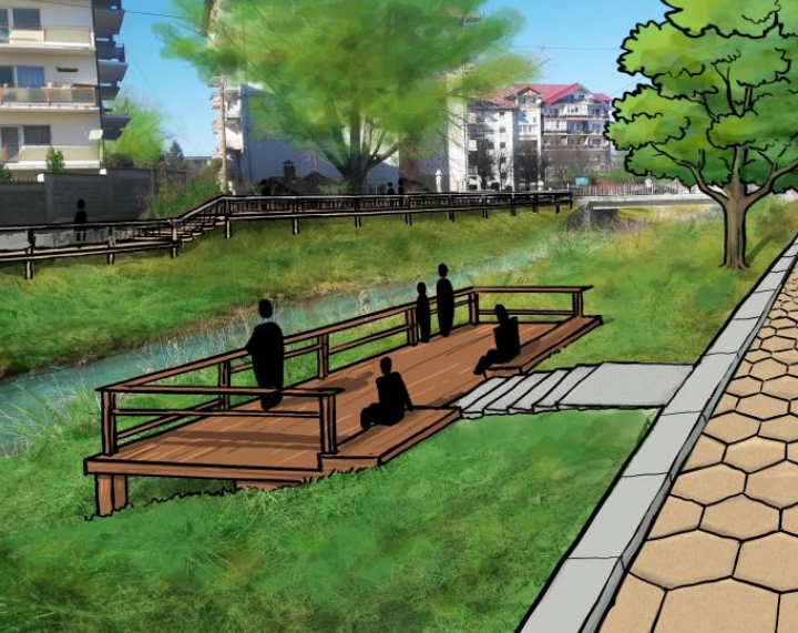 Potrivit memoriului de prezentare depus la Agenția pentru Protecția Mediului Bistrița-Năsăud, prin proiect se propun lucrări de amenajare a unor spații verzi, alei pietonale, piste de biciclete, zone de recreere pe malul apei, corelate cu măsuri de reabilitare, conservare și întreținere a florei și a faunei existente.