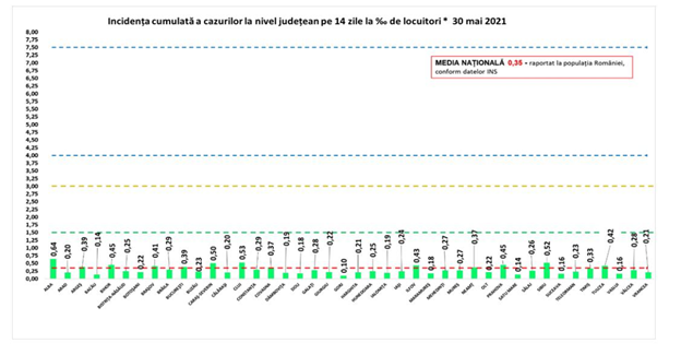 Incidența cazurilor de COVID-19 în Bistrița-Năsăud este de 0,25 la mia de locuitori.