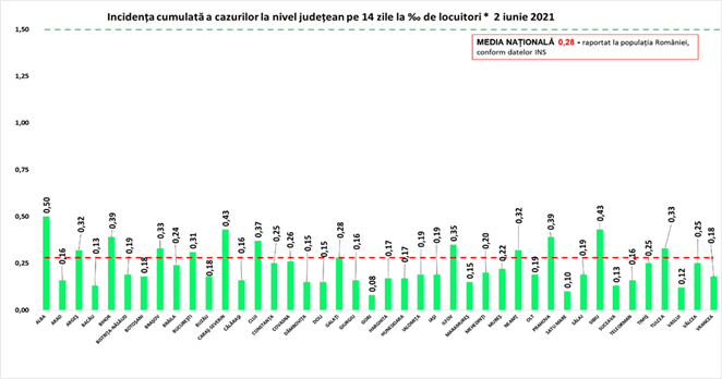 Până astăzi, 2 iunie, pe teritoriul României, au fost confirmate 1.078.142 de cazuri de persoane infectate cu noul coronavirus (COVID – 19).