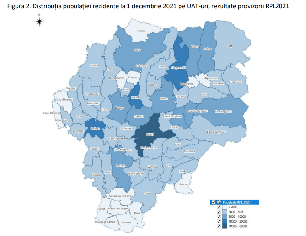 Structura pe localități a populației rezidente a județului Bistrița-Năsăud