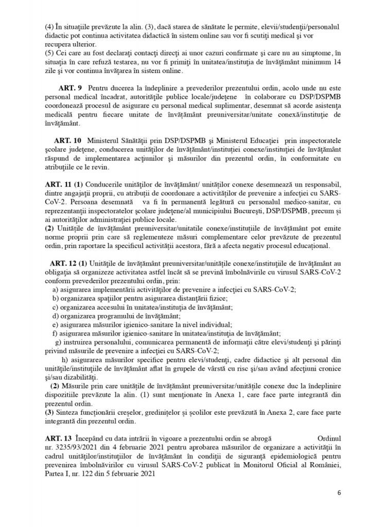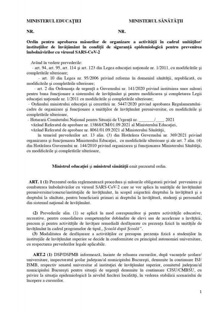 Ordinul comun al ministrilor Educației și Sănătății în care sunt prevăzute noile reguli pentru deschiderea și funcționarea școlilor poate fi consultat în varianta completă AICI.
