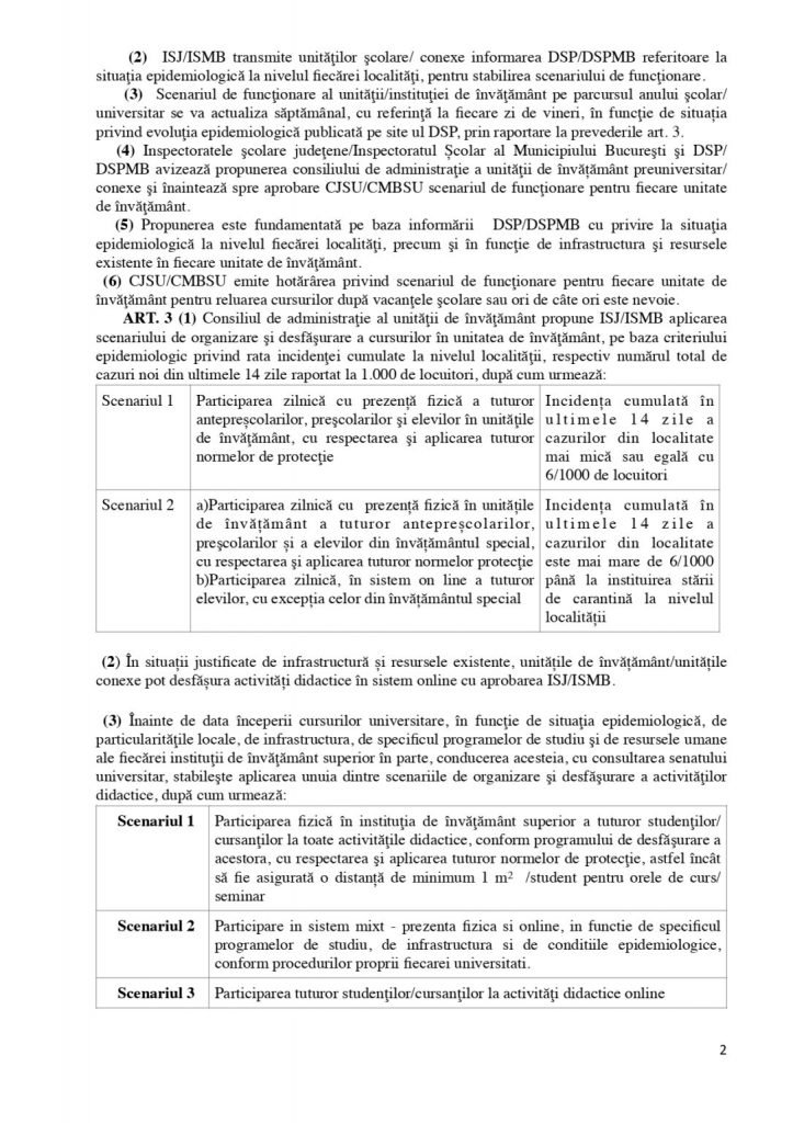 Noile reguli pentru deschiderea și funcționarea școlilor au fost făcute publice, acestea fiind prevăzute într-un ordin comun al miniștrilor Educației și Sănătății. Potrivit documentului, sunt două scenarii cu prag la rata de infectare 6/1.000 de locuitori.