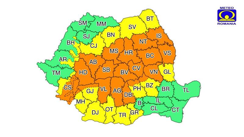 Administraţia Naţională de Meteorologie a emis o avertizare cod galben de instabilitate atmosferică accentuată şi cantităţi de apă însemnate în 25 de judeţe, inclusiv Bistrița-Năsăud, valabilă până joi dimineaţa.