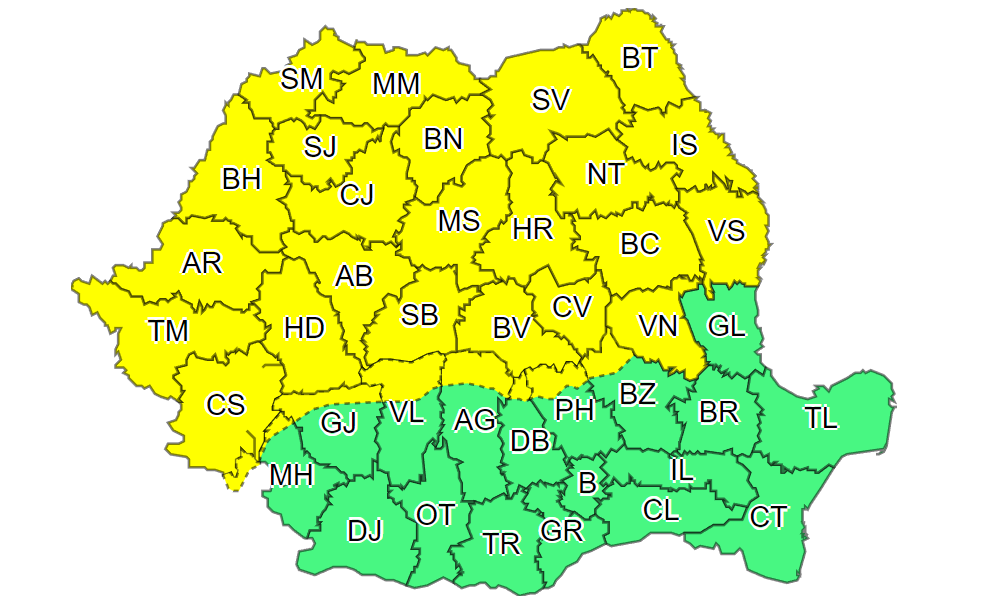 ”În intervalul 03 septembrie, ora 10:00 – 04 septembrie, ora 06:00, vor fi perioade cu instabilitate atmosferică accentuată în extindere treptată dinspre nord-vestul teritoriului. Vor fi averse și cu caracter torențial, descărcări electrice, intensificări ale vântului (în general cu rafale de 55…70 km/h), pe arii restrânse vijelii și grindină în Maramureș, Crișana, Banat, Transilvania, cea mai mare parte a Moldovei, precum și în nordul Olteniei și al Munteniei. În intervale scurte de timp sau prin acumulare cantitățile de apă vor fi de 20…25 l/mp și izolat peste 40 l/mp”, arată ANM.