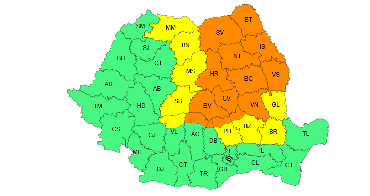 Administrația Națională de Meteorologie a emis, marți, noi avertizări de vreme rea, una dintre acestea vizând și județul Bistrița-Năsăud.