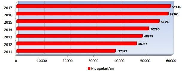 Dacă în 2011, numărul total al apelurilor a fost de aproximativ 37.000, anul trecut acesta aproape că s-a dublat, ajungând la circa 60.000.