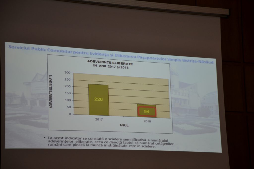 ”Acest număr, pentru noi reprezintă un indicator care denotă scăderea numărului cetățenilor care pleacă la muncă în străinătate, ceea ce sper eu să fie o rază de lumină și speranță că într-adevăr o să reușim să stopăm această hemoragie de mână de lucru. Este vorba despre acele adeverințe care denotă că persoana respectivă nu are probleme și restricții din punct de vedere legal și că poate să meargă în străinătate la muncă. Scăzând numărul lor, sper ca acesta să fie un semn că sunt în scădere plecările noi din județ către alte țări” a declarat prefectul Ovidiu Victor Frenț, într-o ședință a Colegiului Prefectural Bistrița-Năsăud.