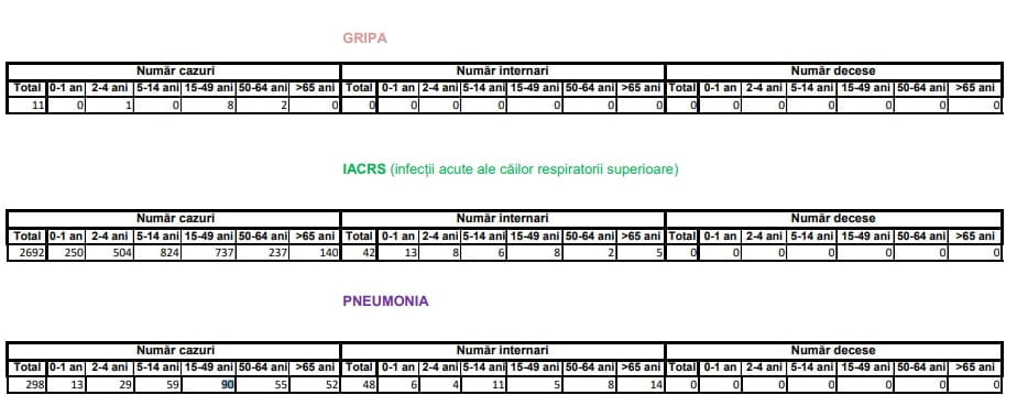 Totodată, în perioada menționată s-au mai înregistrat și aproape 300 de cazuri de pneumonii, cele mai multe (90) la grupa de vârstă 15 – 49 de ani. 49 de persoane au avut nevoie de îngirijire medicală într-o unitate spitalicească.