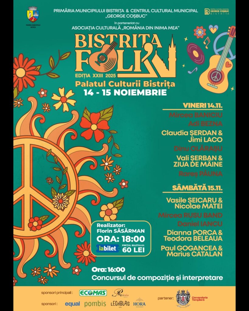 În zilele de 14 și 15 noiembrie, la Bistrița se va desfășura cea de-a XXIII-a ediție a Festivalului-Concurs ”Bistrița Folk”, una dintre cele mai longevive manifestări de profil din ţară.