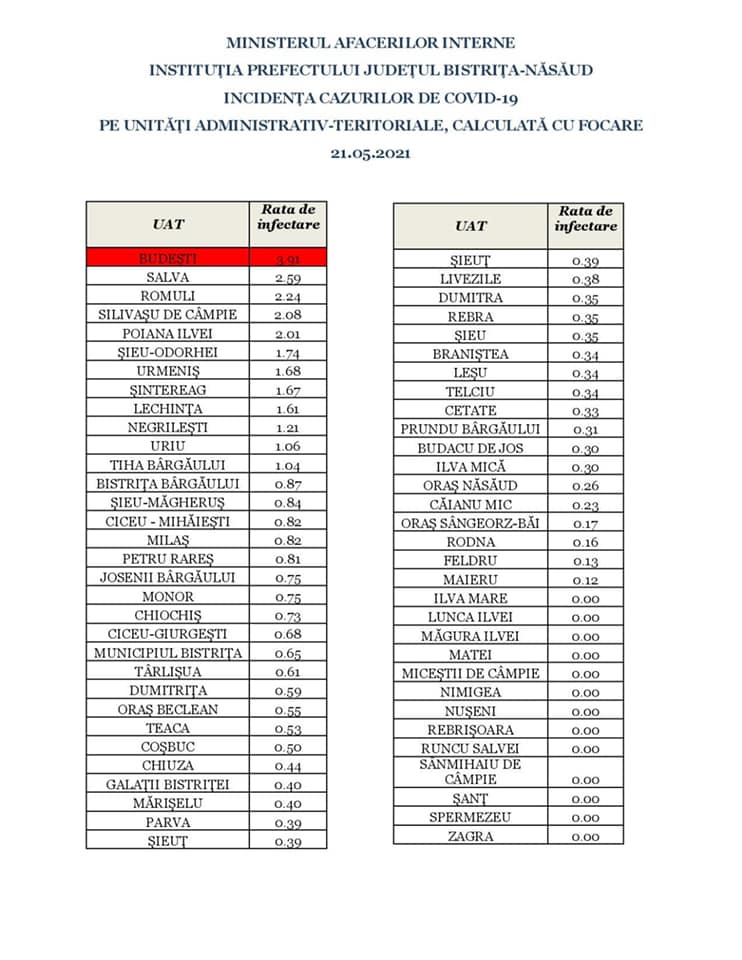 ”În prezent, cu excepția unității administrativ-teritoriale Budești, tot județul nostru funcționează potrivit scenariului verde”, a transmis Prefectura Bistrița-Năsăud.